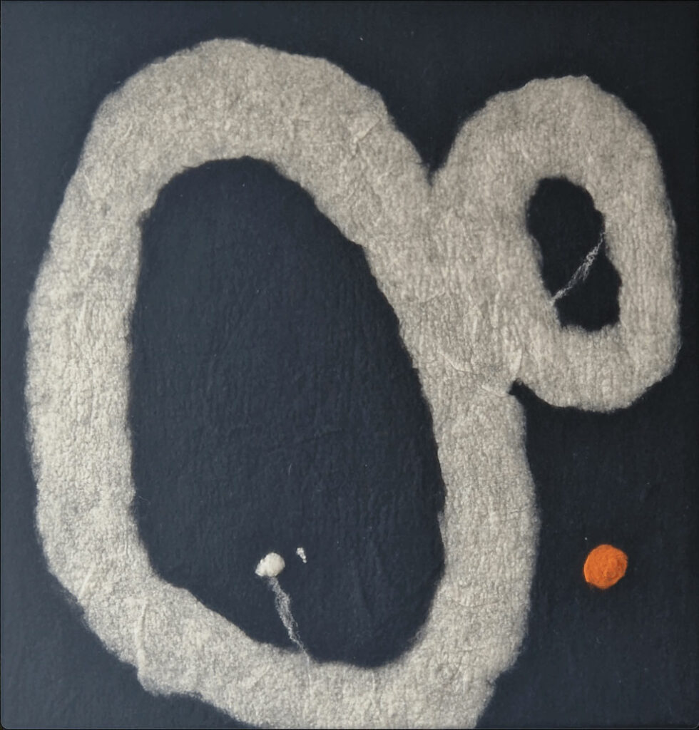 L’énergie d’Émilie de DEWAELE me touche : insoumise à la dichotomie du monde, sa violence, son injustice, Émilie, DEWAELE, puisse dans sa danse avec la matière brute, dans la sensualité de la laine, et dans la couleur, le noir et blanc, une énergie plus profonde qui appelle à la liberté du geste, à l’équilibre et à la paix intérieure, à la méditation et à la spiritualité. Quand le « soleil orange » apparaît, l’œuvre est achevée et la paix retrouvée… Merci Émilie. Estelle LEBAS.