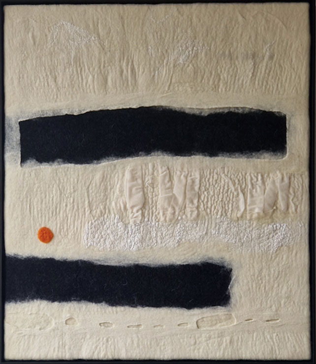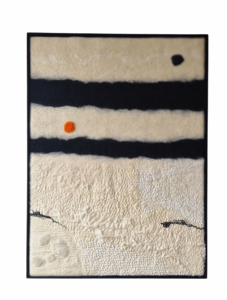 Depuis 2021, sa vie est en partage. A Lille, elle exerce en tant qu’avocate. En Creuse, elle a posé ses toiles dans son nouvel atelier. Elle a développé également la technique de la laine feutrée, apportant à ses œuvres une douceur supplémentaire. Dépassant les outils classiques, pinceaux et crayons, l’artiste structure la laine et les fils de fibres naturelles. En sculptant la matière, son art évolue aujourd’hui vers un renouveau créatif.