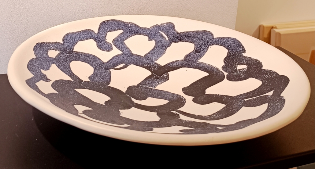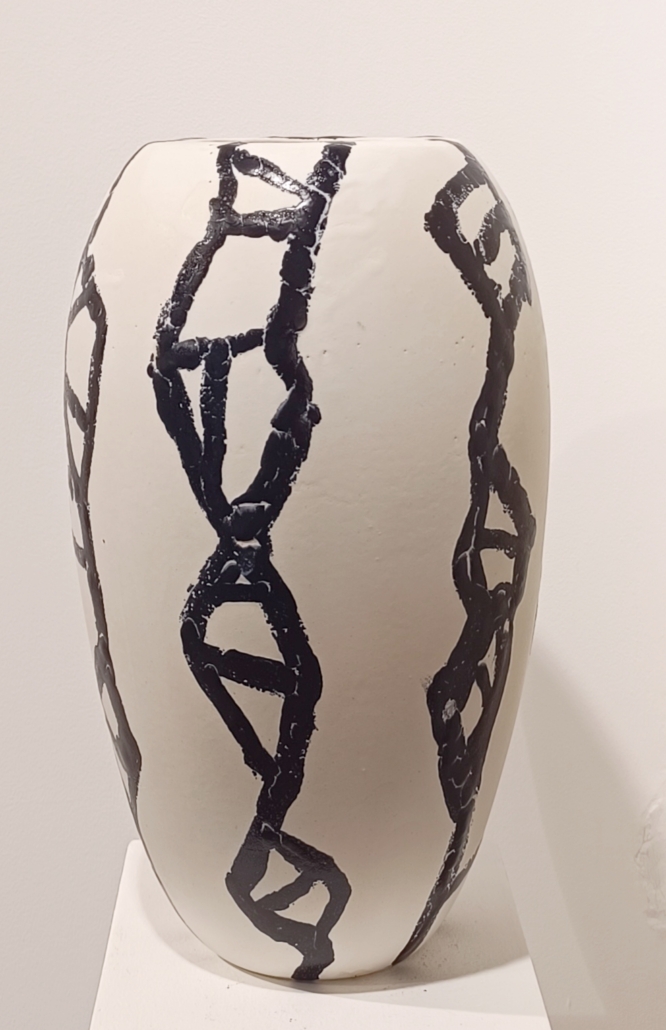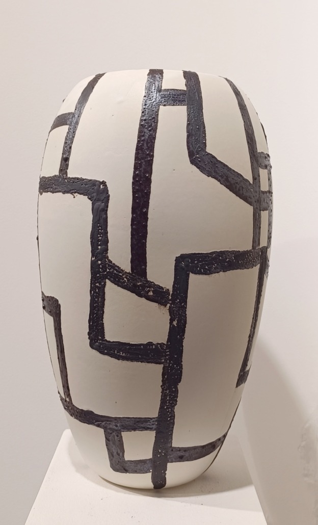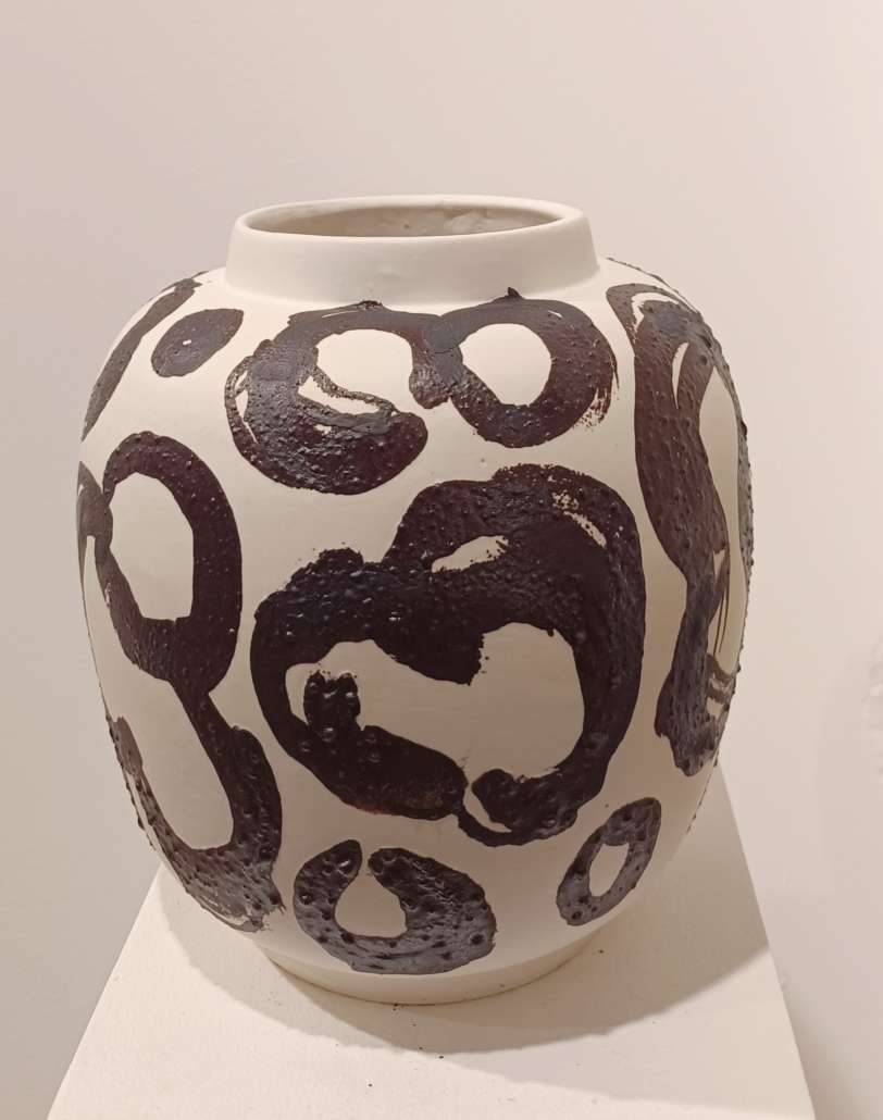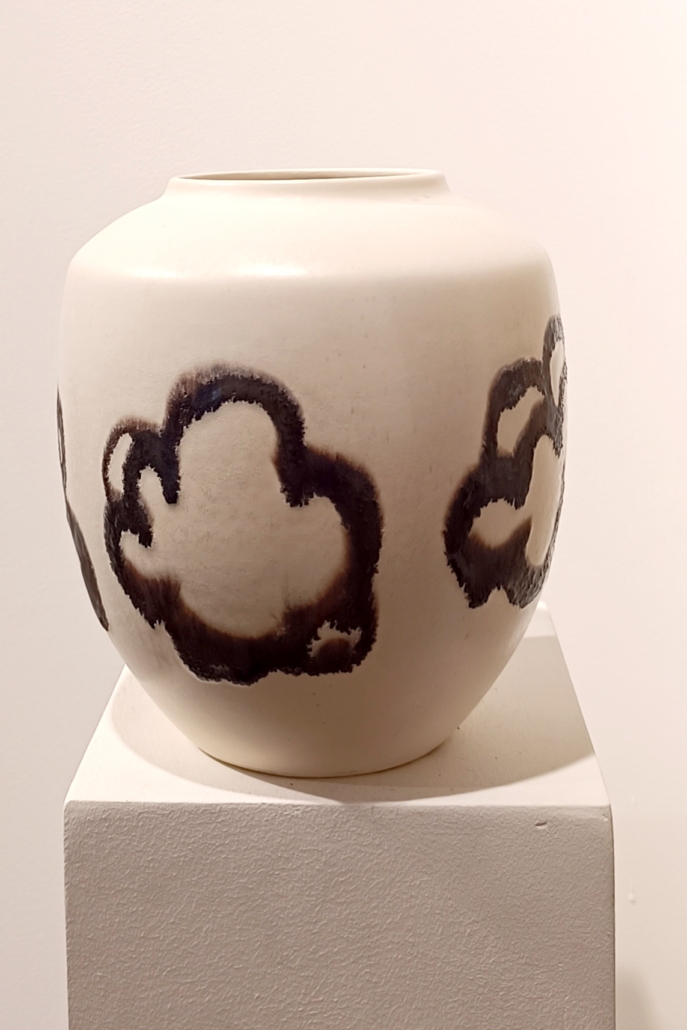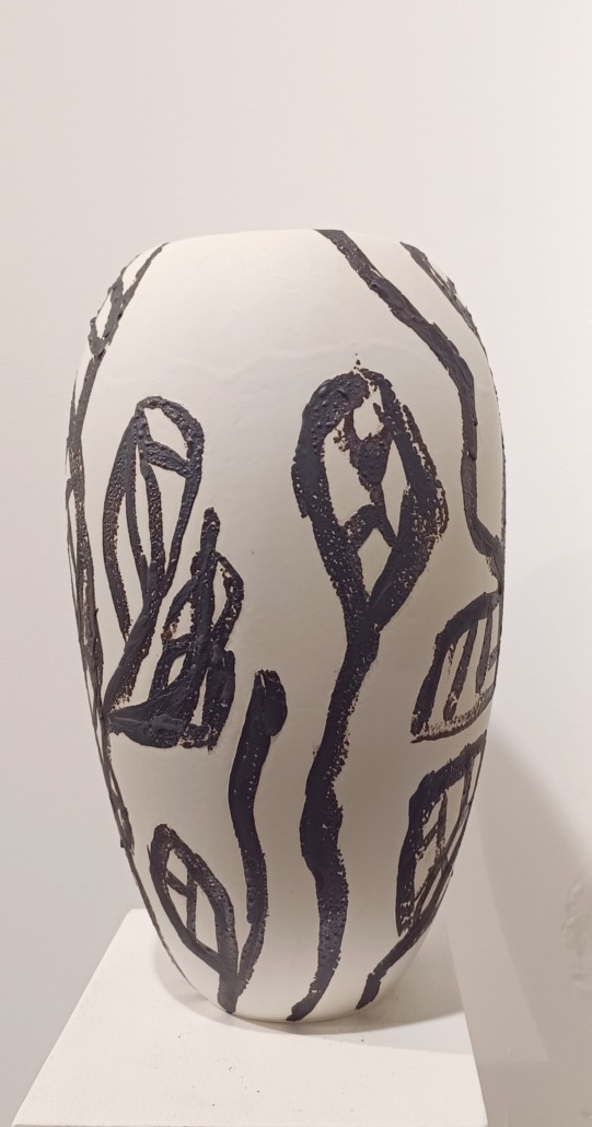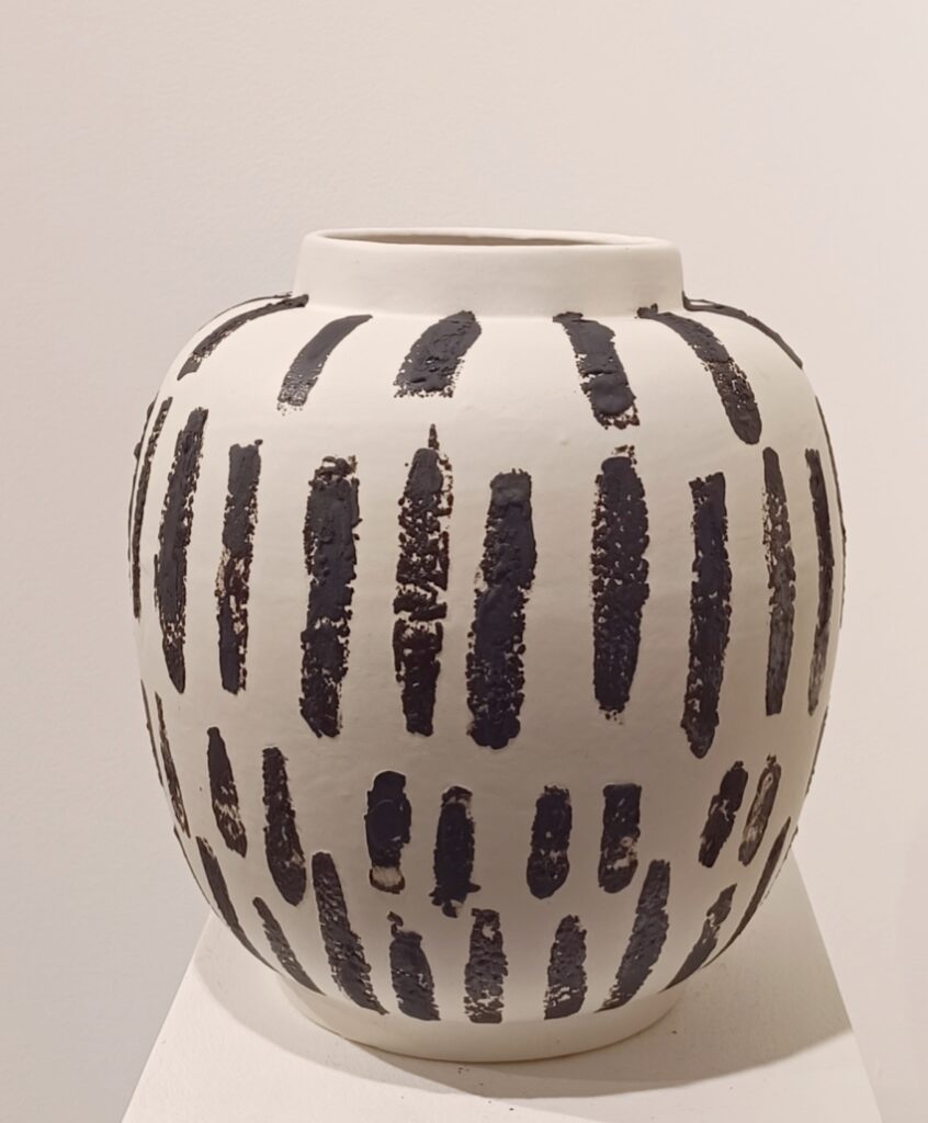 Sa pratique, ancrée dans la peinture, s’enrichit d’un travail photographique régulier – aujourd’hui réalisé au smartphone – à l’origine de séries comme Entre chiens et loups ou Children’s corner. Depuis 2003, elle développe une approche singulière de la faïence, en modelant elle-même ses formes, décorées à la main et produites dans l’atelier du maître-artisan Anicet Delattre à Desvres. Ses installations en céramique, dont les robes à l’échelle 1, interrogent la figure féminine en résonance avec les lieux qui les accueillent.