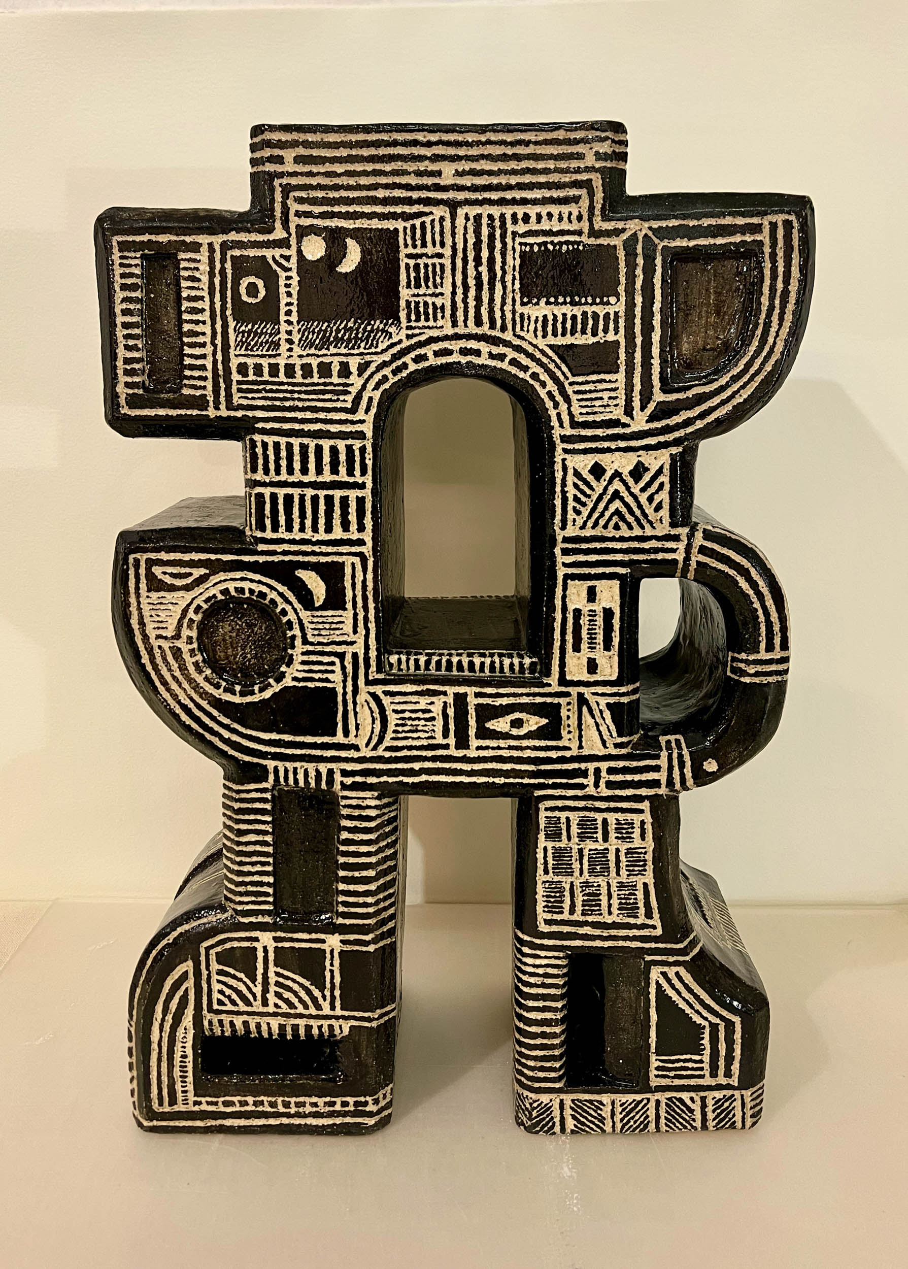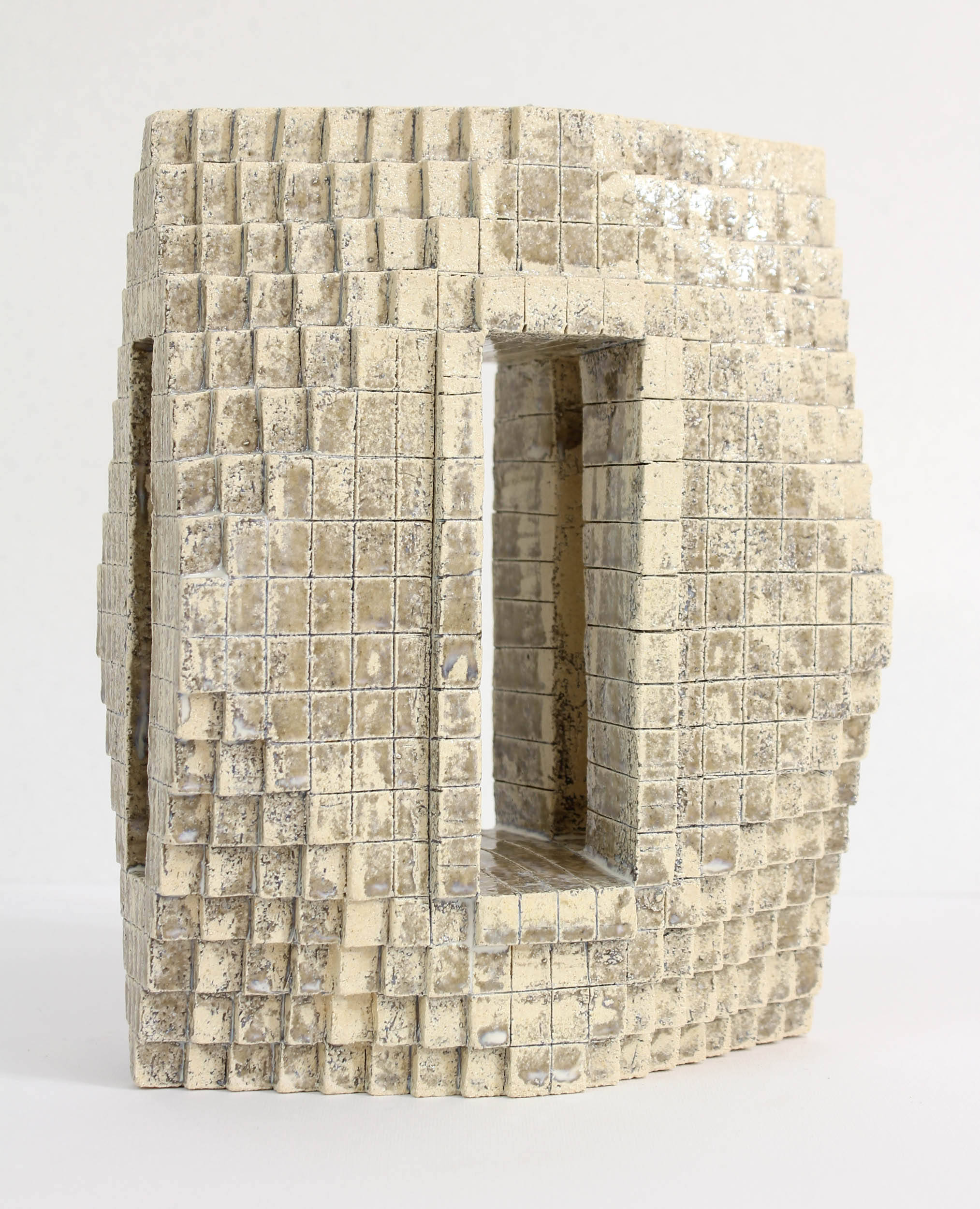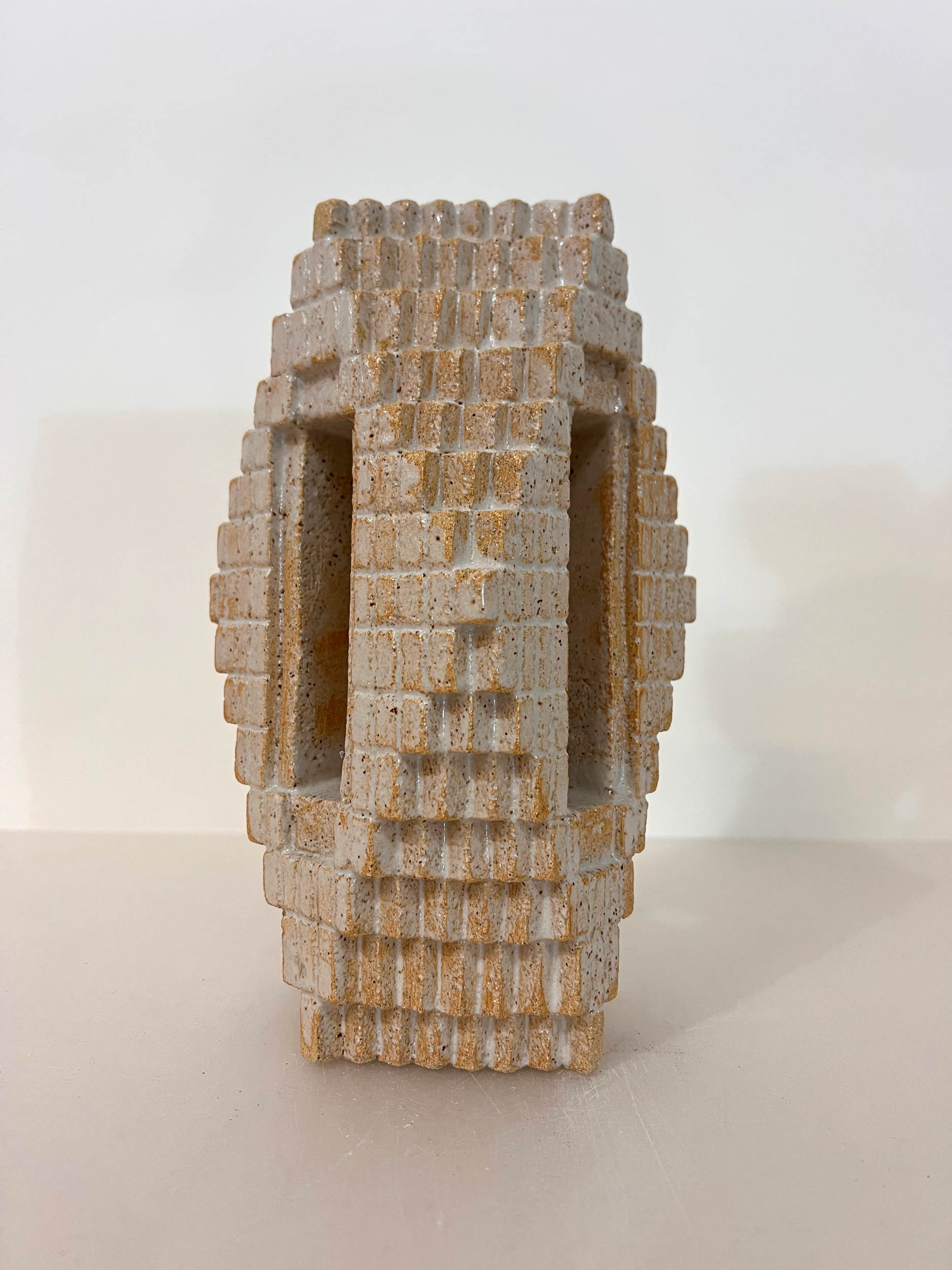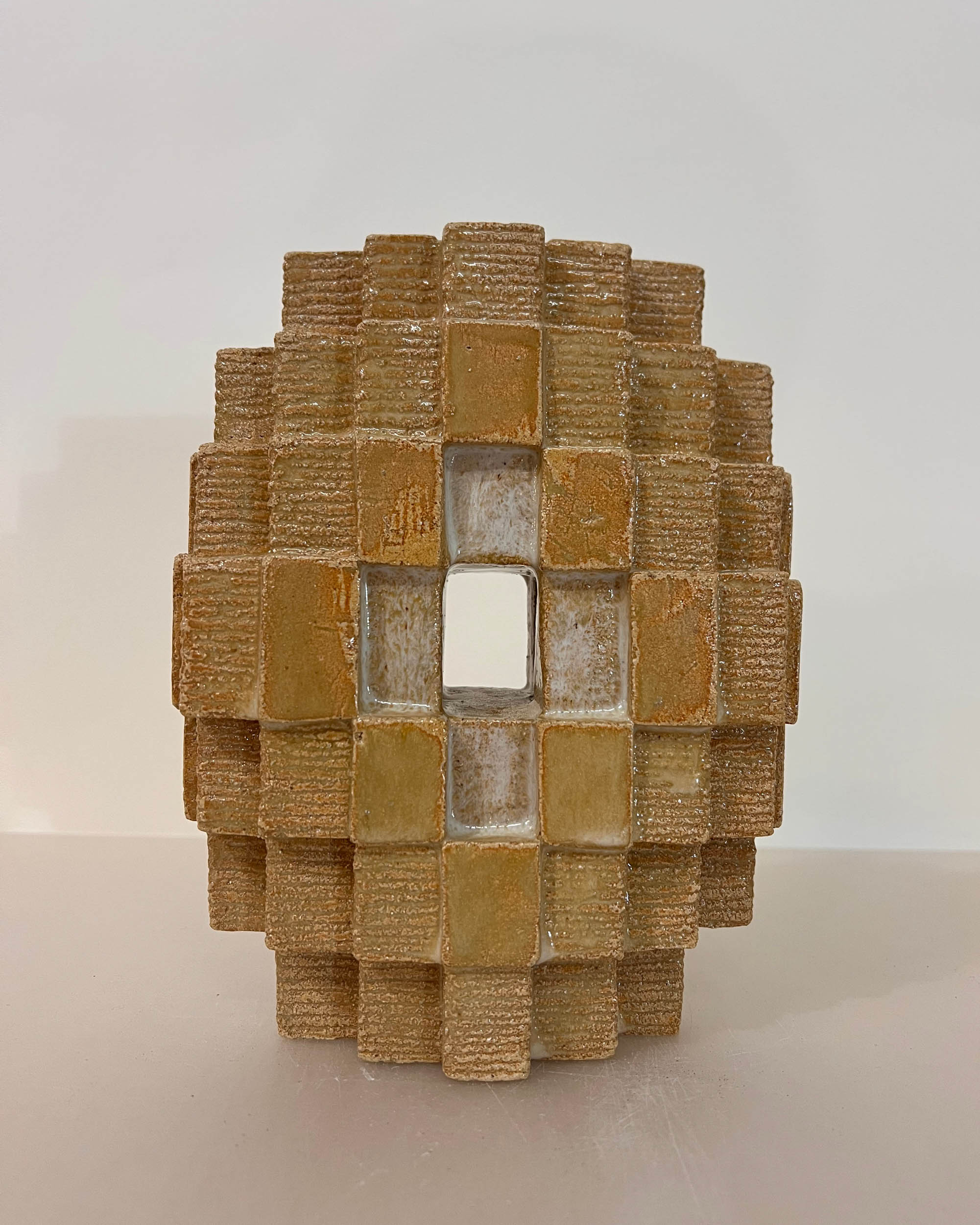 La céramique depuis 2021, lui donne la possibilité de réaliser des azulejos singuliers et des volumes totémiques.