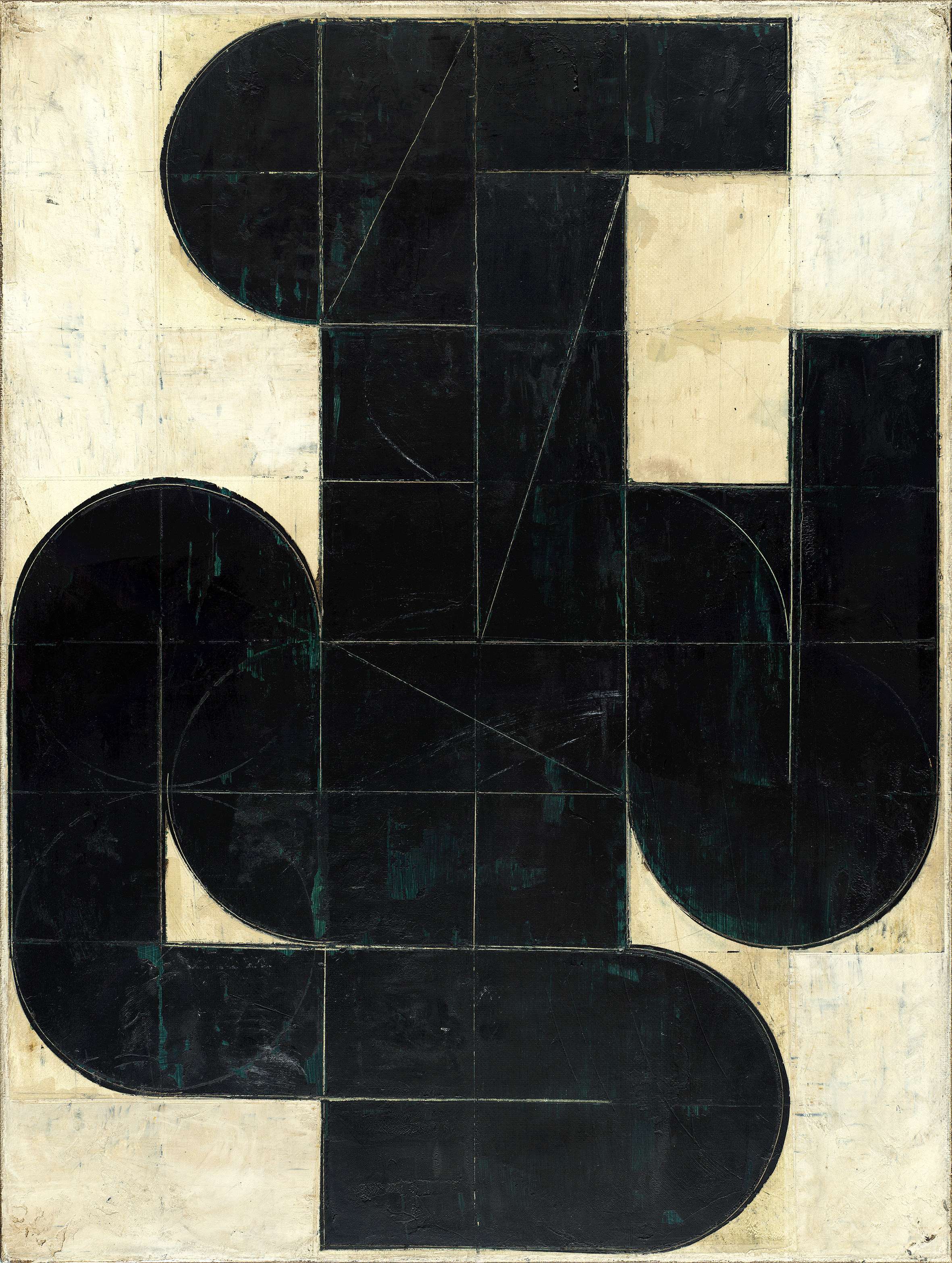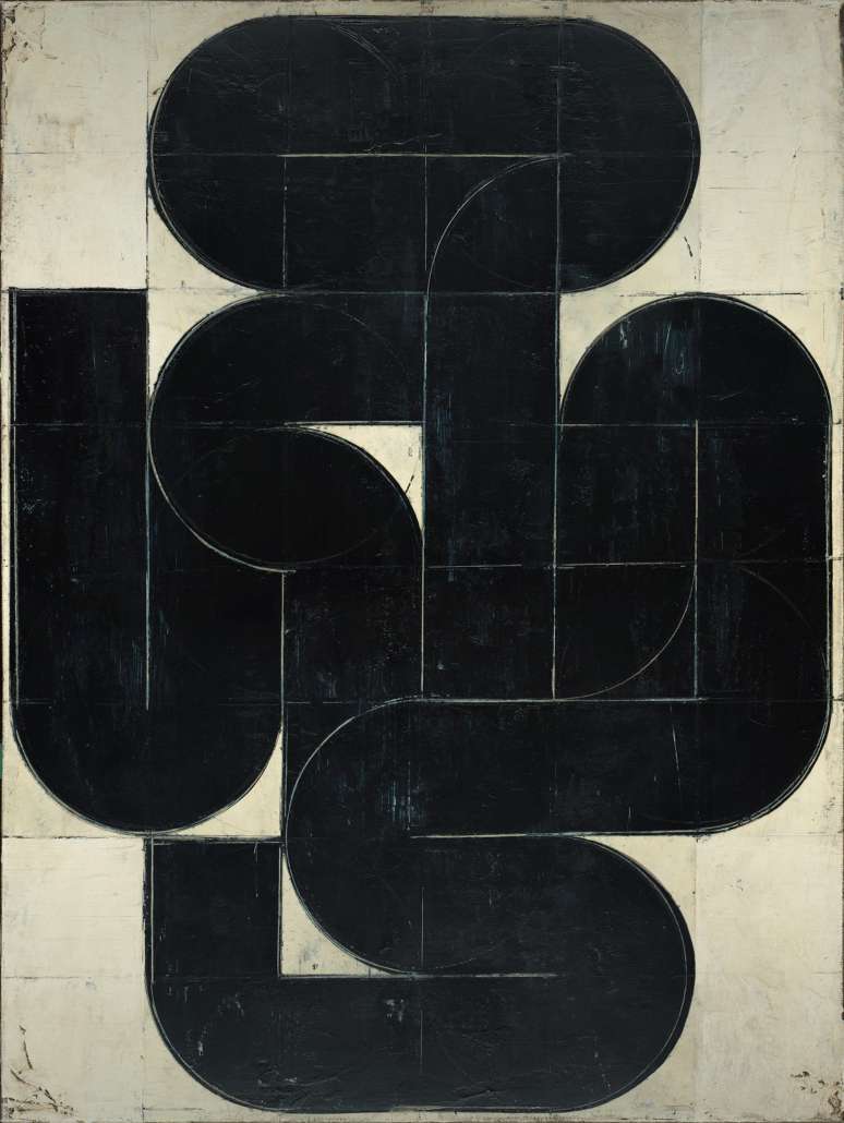 Les peintures abstraites monochromes, avec des formes incurvées noires dominantes, occupent une place clé dans le développement de l’œuvre récente de l’artiste.